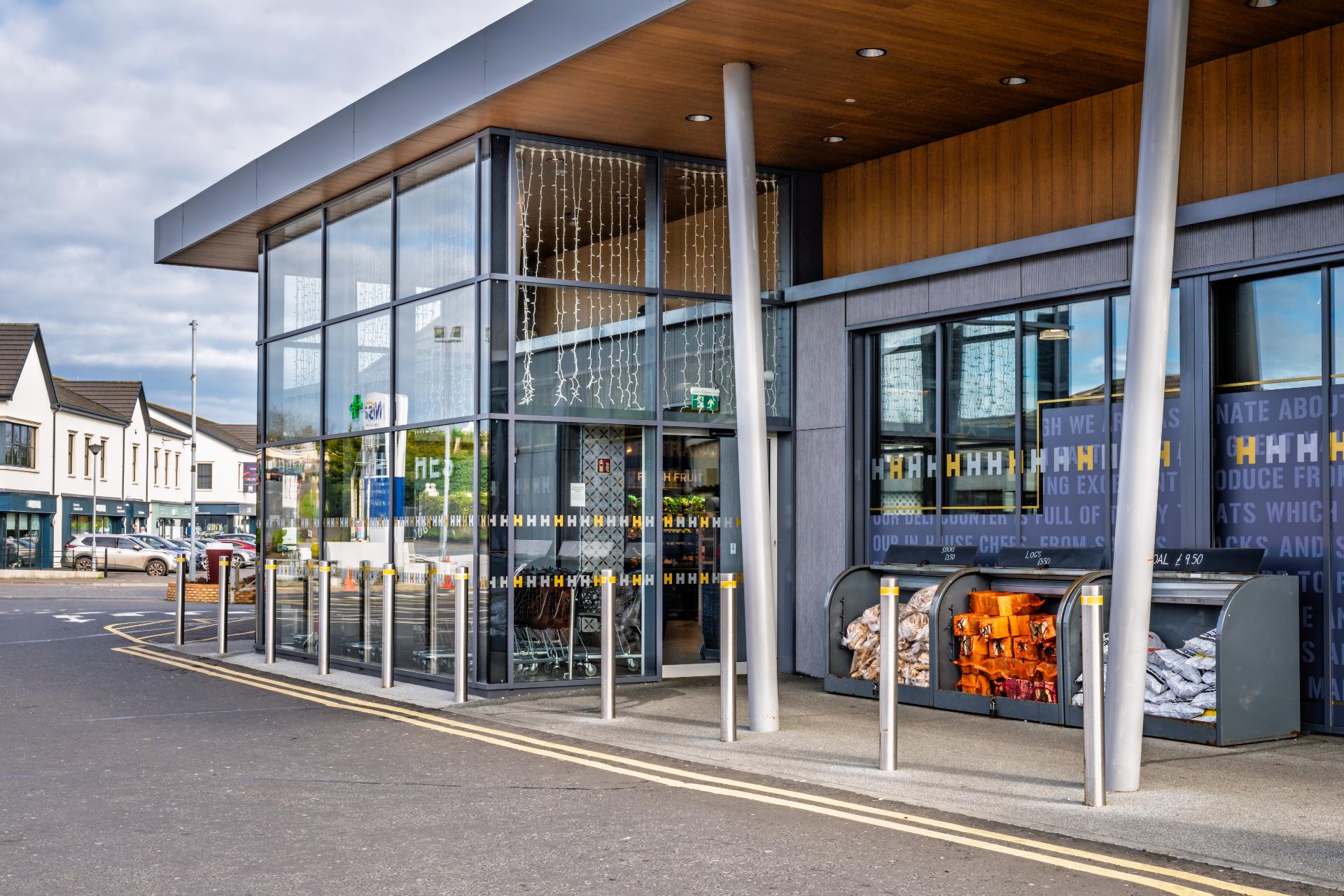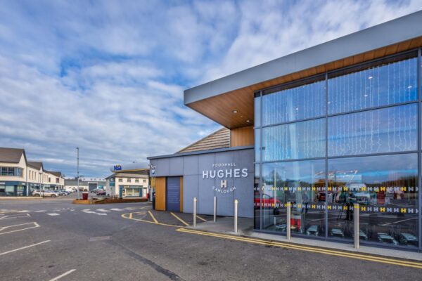 This large commercial project transformed retail provision in Camlough. The works included extending a long-established supermarket, absorbing existing units into a new food hall, installing a stone-clad glazed entrance, and recladding the building. External works provided new customer car parking and boundary walls.