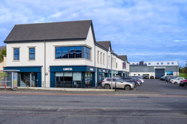 On a separate derelict site across the road, McParland Brothers constructed new two-storey retail premises with glazed shopfronts and large industrial units to the rear, supported by new roadways, footpaths, and parking bays.