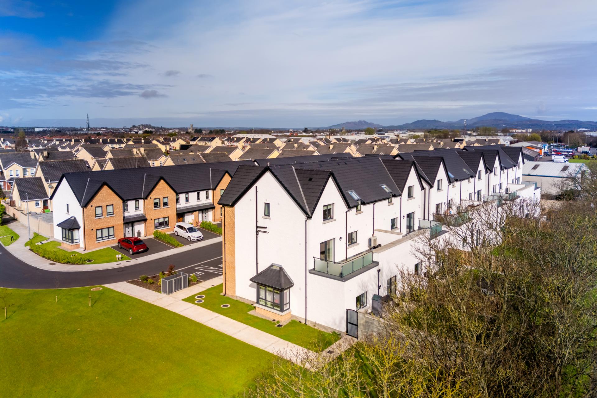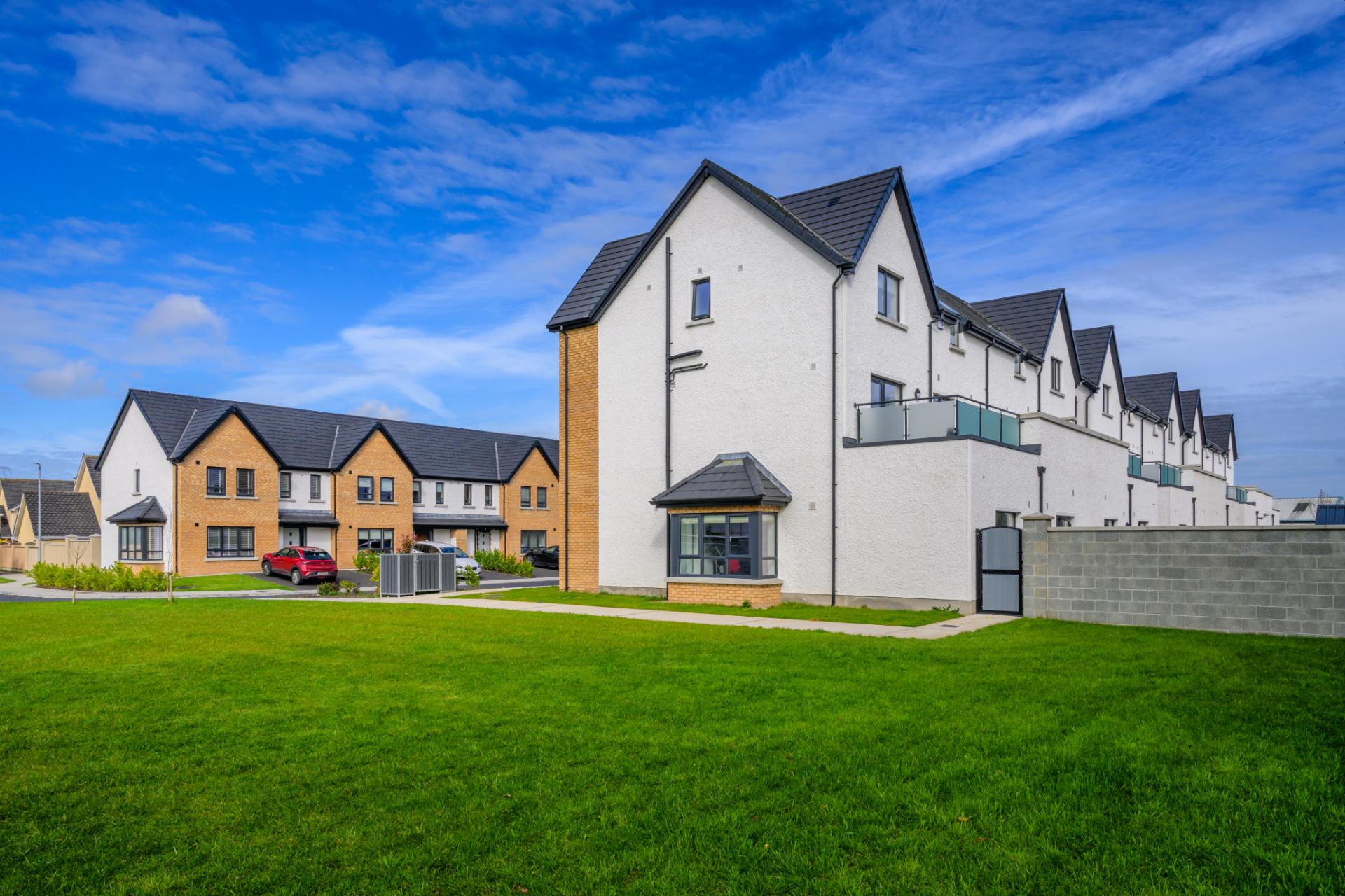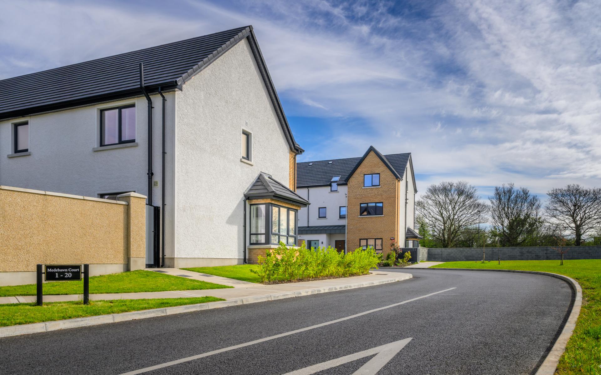 This private development introduced 20 new units into an existing residential area. It includes 8 three-bedroom townhouses, 6 ground-floor two-bedroom apartments with private gardens, and 6 three-bedroom duplex homes with balconies. Finished with brick and render, the properties also feature zinc roofing on porch areas. Site development works provided green spaces, car parking, and EV charging units to support modern sustainable living.